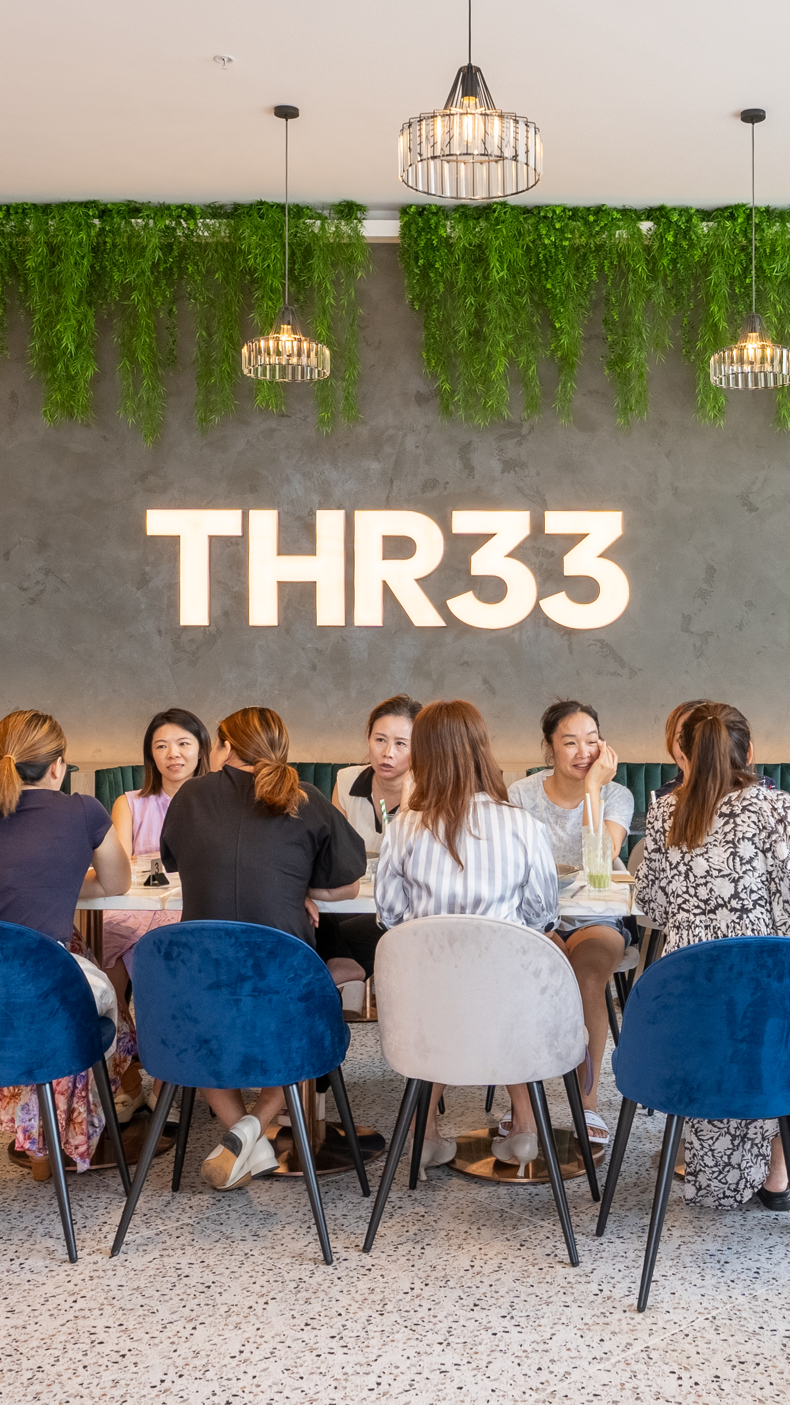 Every design move contributes to a high-energy, high-comfort café experience. Spatial rhythm allows for moments of pause and gathering alike, with zones defined through light, material, and form. Rendered walls, velvet banquettes, and polished surfaces reflect a confident identity. THR33 is unapologetically expressive—built to be remembered.